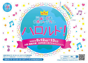 第7回 岡山子ども未来ミュージカル「ハロルド!」は現代の岡山を舞台に、山・川・海、家族と友だち、人間、そしてAIとの出会いを経て成長していく子どもたちと命の物語。本公演は関西・大阪万博内 EXPO ホール「シャインハット」にて公演が決定。100名を超える小中高校生たちと共に、歴史を刻み続けるミュージカルに参加できる。