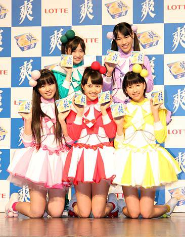 「ロッテアイス爽」を手にほほ笑むももいろクローバーZならぬ「ももいろクローバー爽」(C)ORICON DD inc.