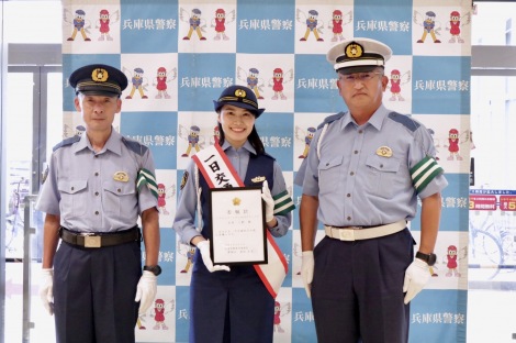 兵庫県警一日交通安全大使を務めたミスユニバーシティ2021日本大会グランプリ・吉田三莉。