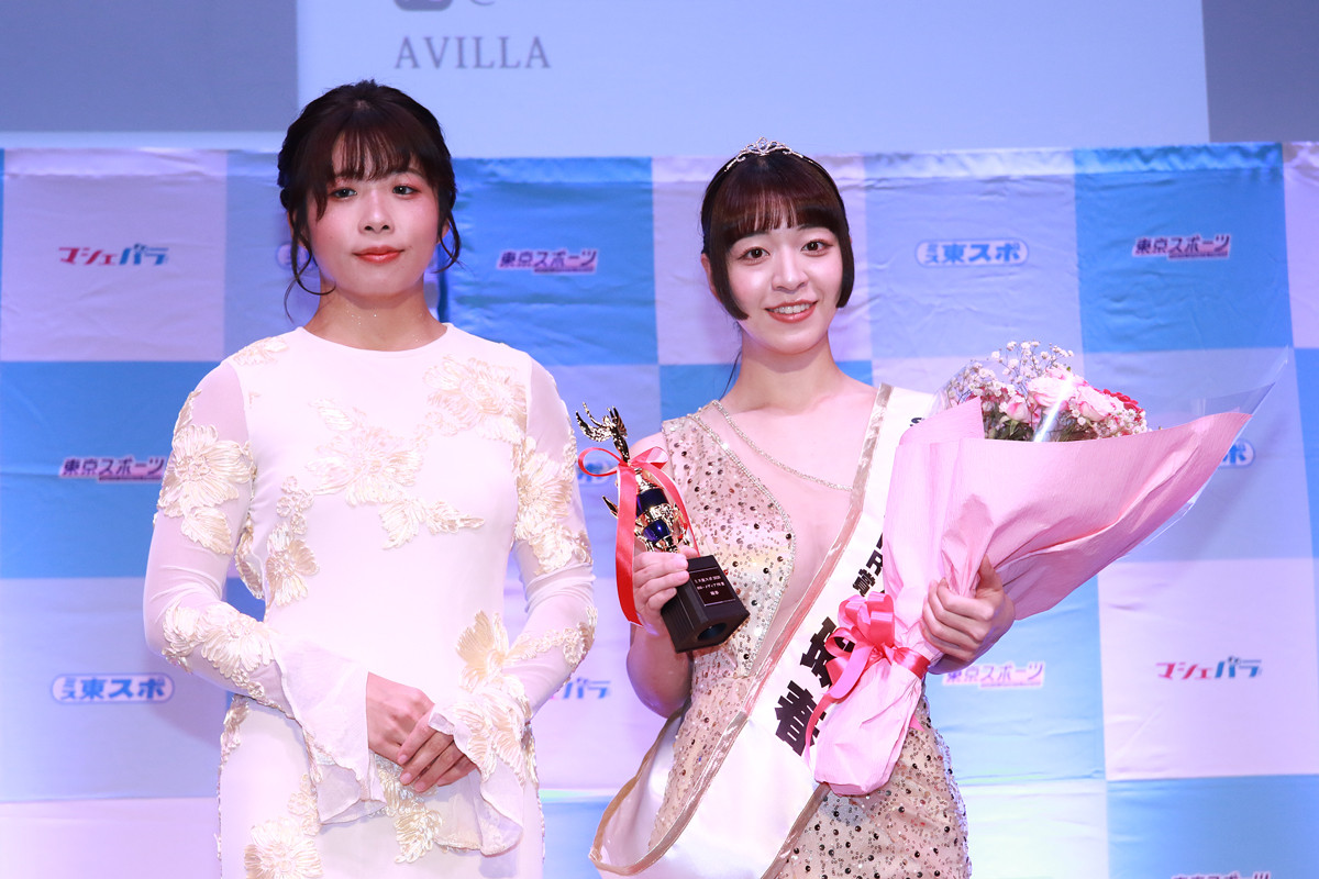 『ミス東スポ2026』グランプリ発表記者会見(左から)『ミス東スポ2025』グランプリ・心愛、『ミス東スポ2026』グランプリ・三上ひびき(C)Deview