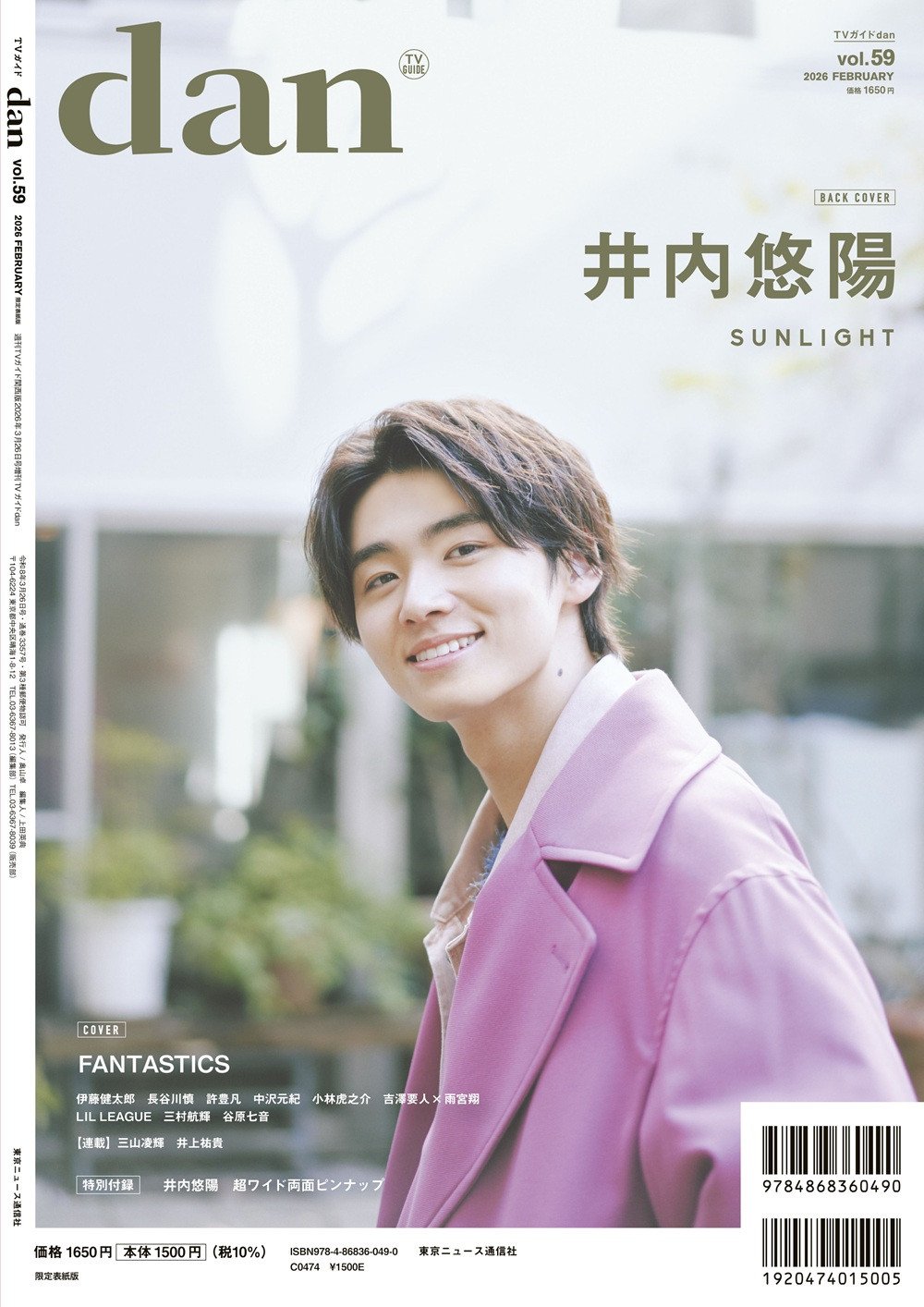 「週刊TVガイド関西版2026年3月26日号増刊 TVガイドdan[ダン]vol.59」(東京ニュース通信社刊) 裏表紙に登場する井内悠陽