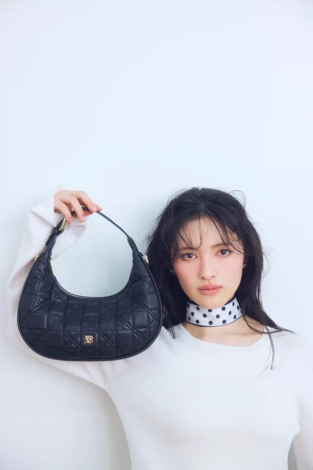菅田愛貴:ドレープオフショルダーリブニット/イージーケア/【POLO】タックフレアスカート/ひねり金具ワンハンドルバッグ/2WAY,軽量