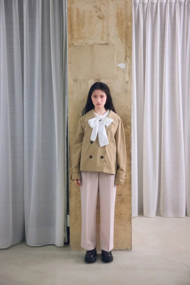 菅田愛貴:ショートトレンチコート/UVケア・撥水・花粉ガード/バイカラーリボンドッキングニット/美easyリネンライクワイドパンツ