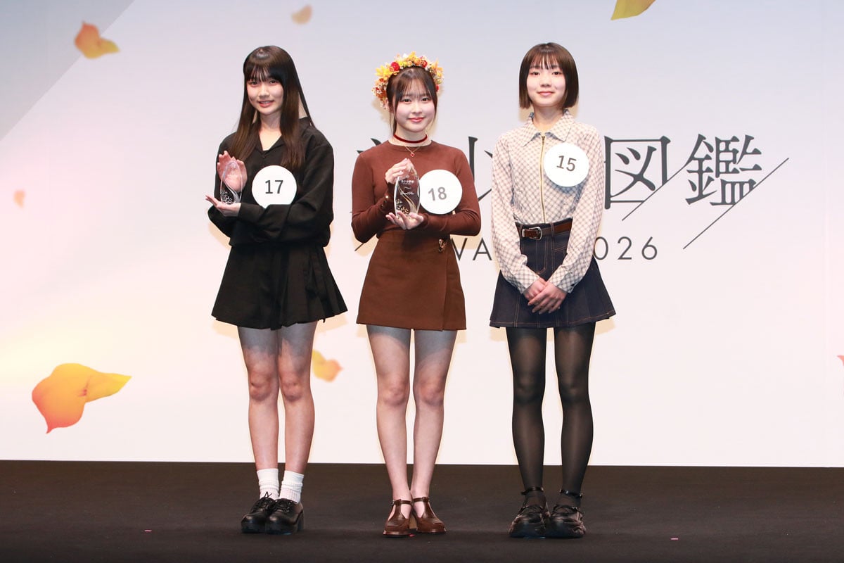 「美少女図鑑AWARD 2026」授賞式。(左から)準グランプリ・川上穂華さん、グランプリ・榎本彩乃さん、審査員特別賞・栗原愛香さん(C)Deview