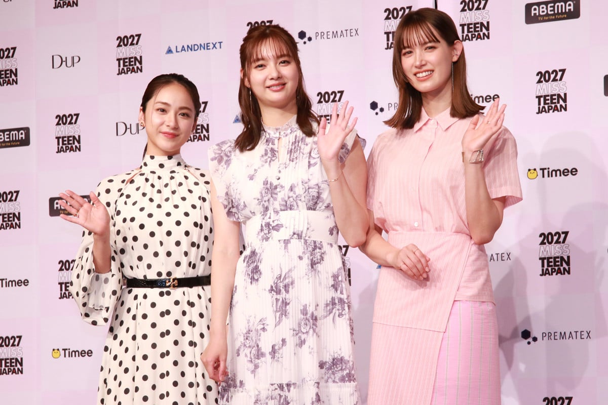 『2027ミス・ティーン・ジャパン開催発表会』に登場した(左から)平祐奈、新川優愛、トラウデン直美 (C)Deview